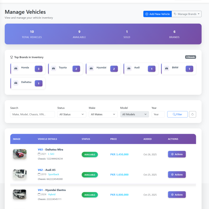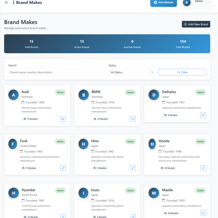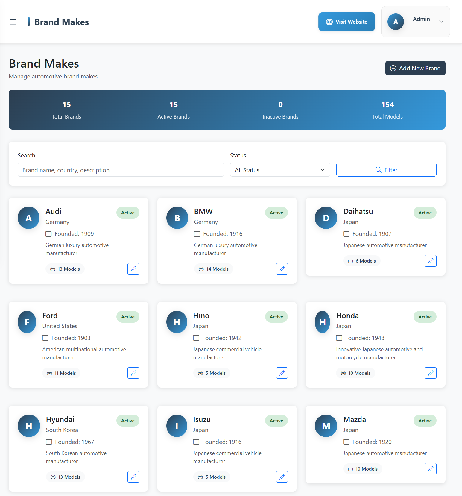 Add and organize vehicle brands and models for better cataloging and quick filtering. Simplifies data entry and reporting for both backend and frontend operations.