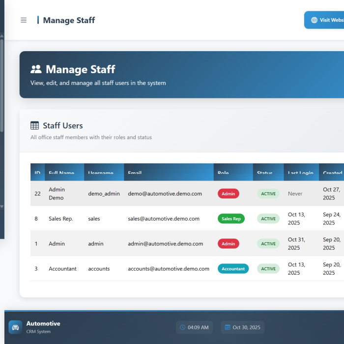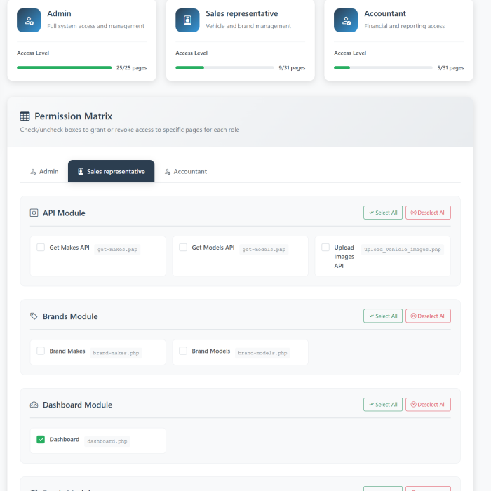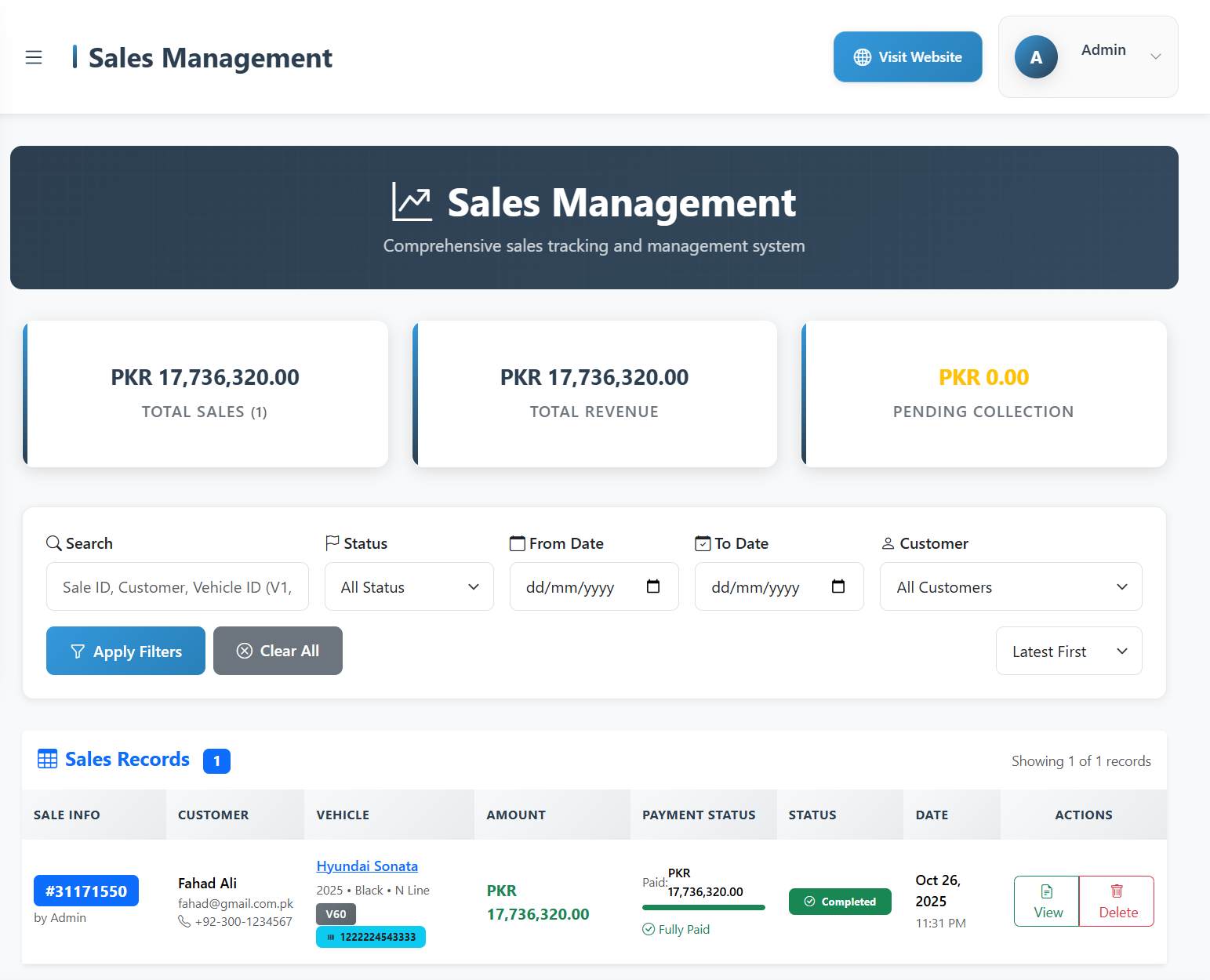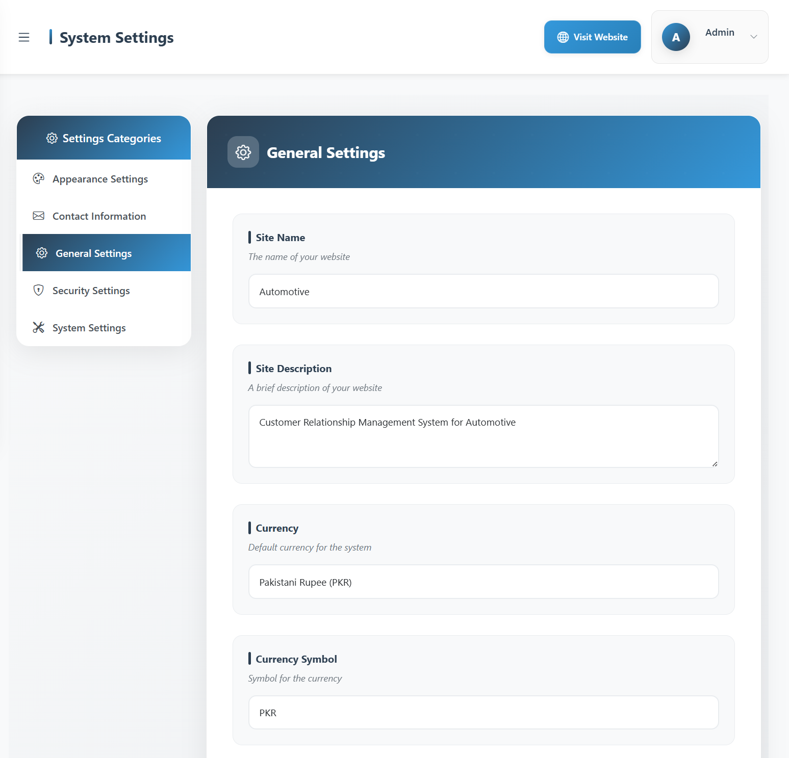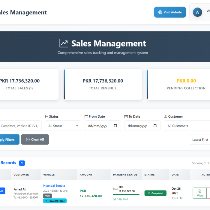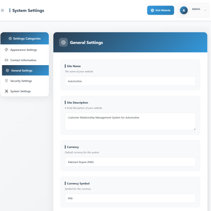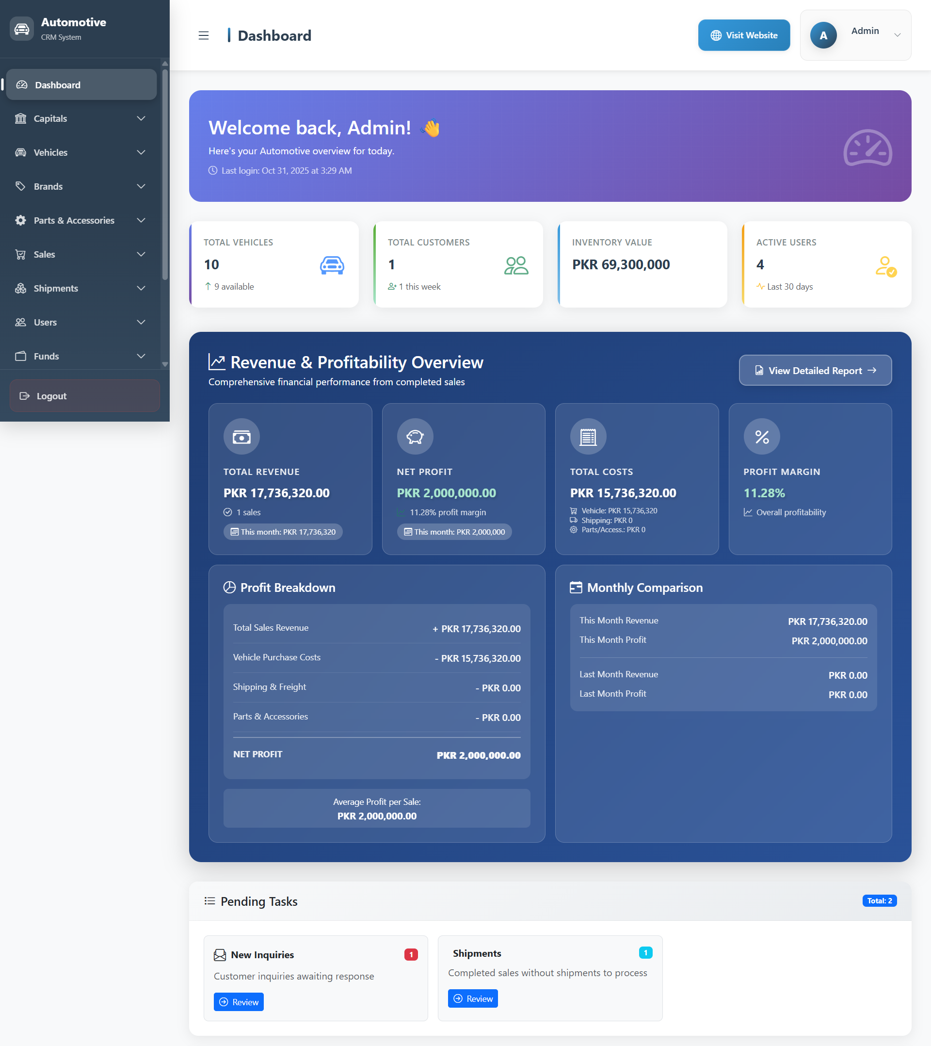 The CRM includes a comprehensive frontend website with: Vehicle listings, Photo galleries, Inquiry forms, Customer reviews. Itโs a complete online presence for your automotive business โ connected directly to your CRM backend.