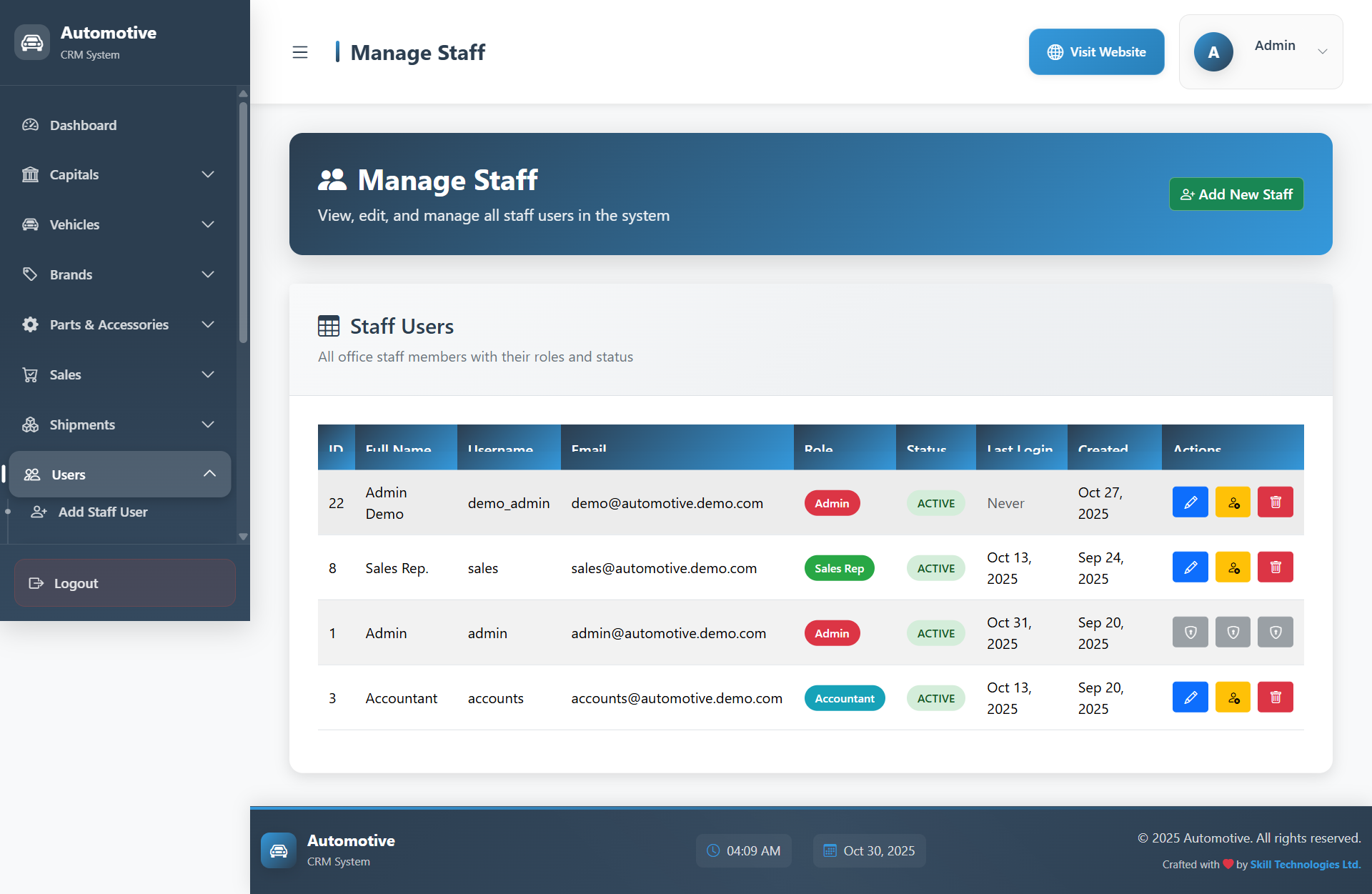 Add, manage, and monitor your team members โ including their assigned roles, performance, and activities. Perfect for growing dealerships and multi-branch operations.